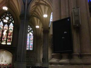 Even mounted to the columns at St. Patrick’s Cathedral (bonus: Bose speakers).