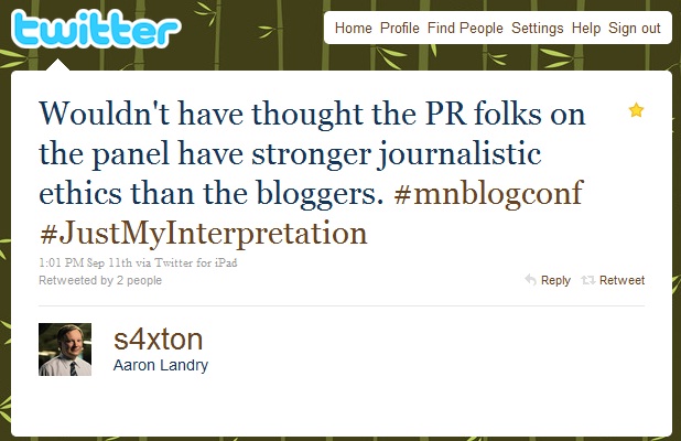 I spoke on a panel about the relationship between public relations and bloggers at the first annual Minnesota Blogger Conference earlier this month. All four of us on the panels were bloggers, but only two of us were marketers who work with bloggers.