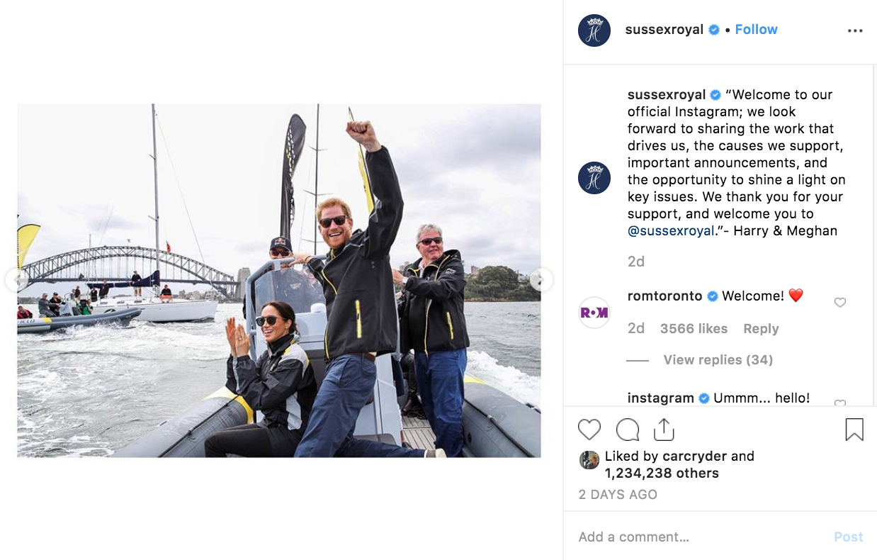 And Prince Harry and Meghan Markle have a new 3-day old Instagram account that’s already at nearly 4 million followers.