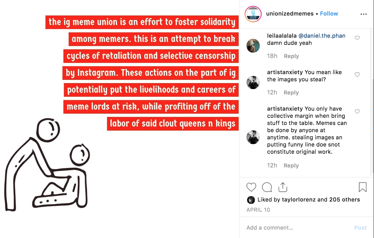 Instagram meme creators are unionizing, and this isn’t a joke. These “memers” say the platform doesn’t pay them for their work or give them any control, and they hope to negotiate better working conditions. Key quote: “People are doing a lot of work, doing it for free or little compensation, or not recognized for the work they’re doing… All these people are bringing revenue to Instagram, producing this major profit margin for this company, and they’re subject to really little job security.” It may sound a little far-fetched on the surface, but it’s not the first time content creators have organized to demand respect, compensation and control. RIP Vine.