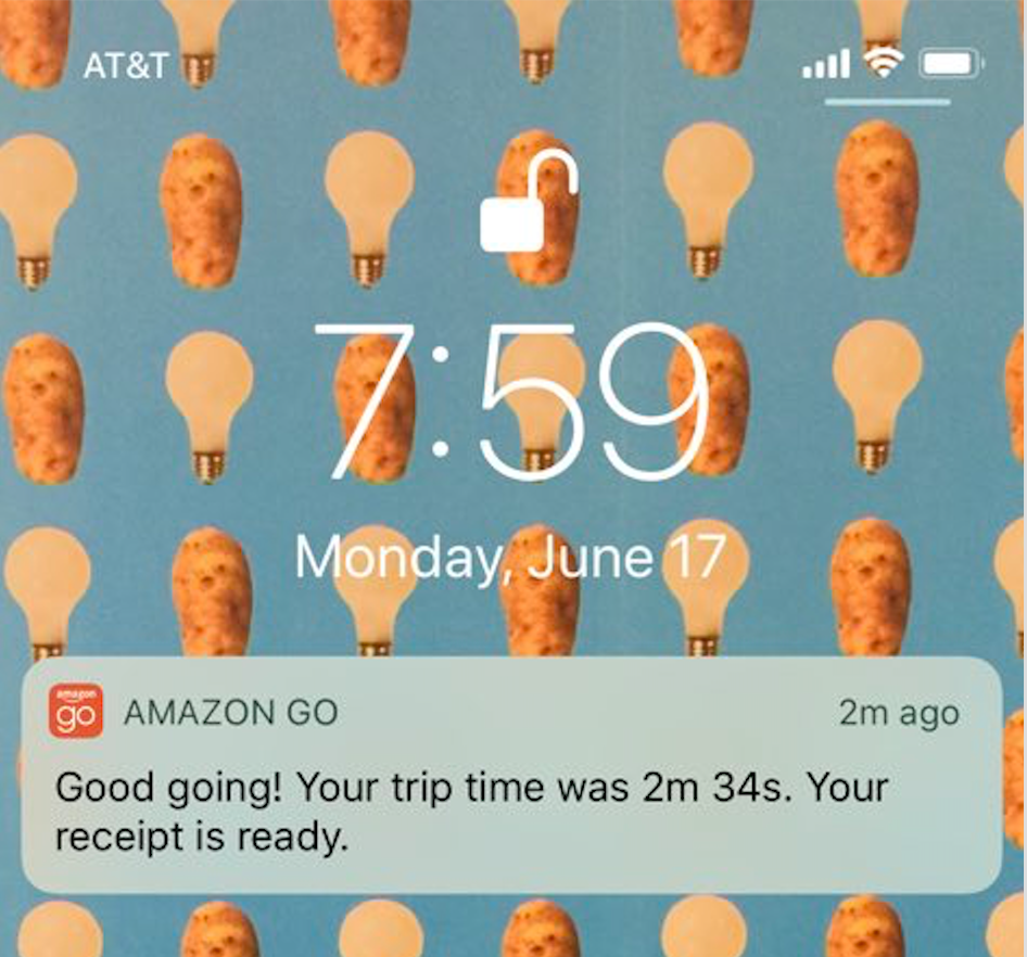 Just grab what you want and go — then your phone will get a push notification with your receipt.