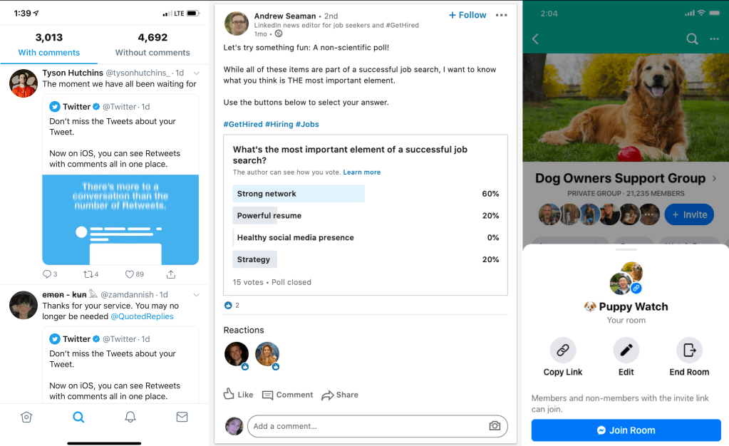 SocNet Updates: Twitter launched Retweets with Comments on iOS. Facebook’s introduced Messenger Rooms for Groups, and its Bitmoji-like avatars are rolling out to Messenger and in-app comments. TikTok changed its rules about brands using popular music. Instagram is rolling out new ways to combat bullying and testing new ways to skim Stories. LinkedIn is adding new polls and live video engagement tools.