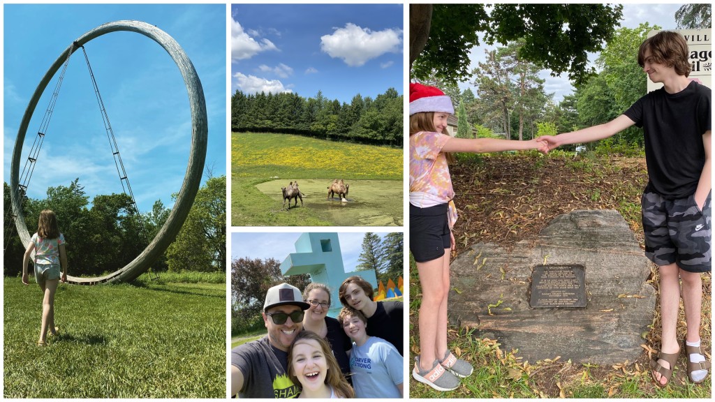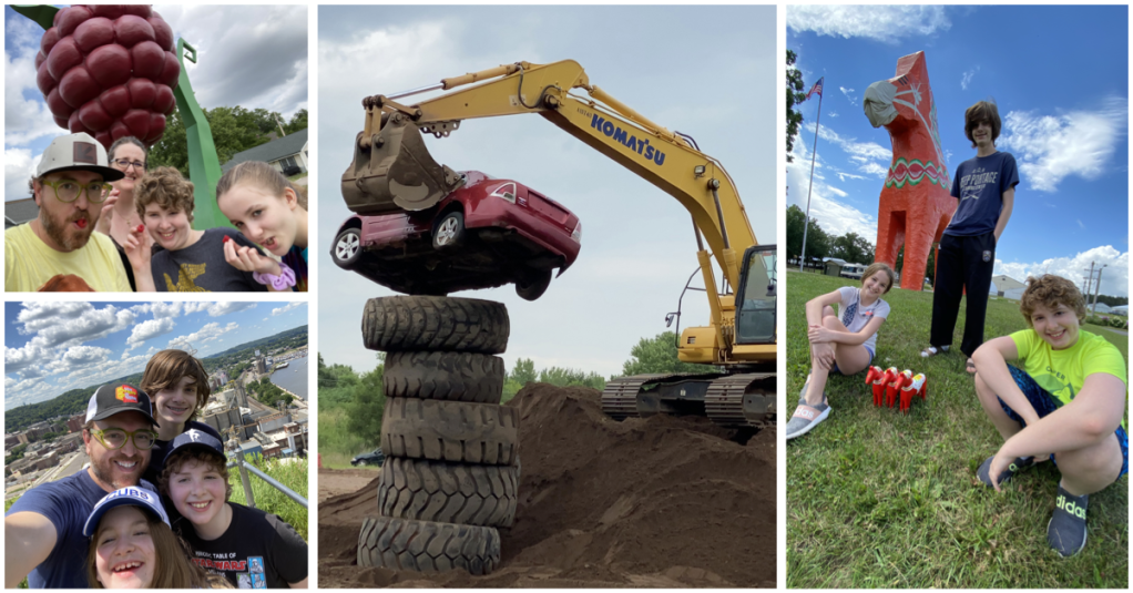 That’s when he tapped into his creativity and came up with the idea of socially distant day trips. Each weekend, the Swann family travels to an attraction within a 60-mile or so radius from their home (close enough to minimize the need for things like public restrooms). To amp up the anticipation, he doesn’t tell his family where they are going ahead of time; instead, during the week he doles out clues. So far the family has visited dozens of sites, from Extreme Sandbox in Hastings, Minnesota, where you can watch heavy machinery at work from the comfort (and distance) of your own vehicle to a corner of Lawshe Park, in South St. Paul, Minnesota — the first place where women in the United States voted after the ratification of the 14th Amendment.