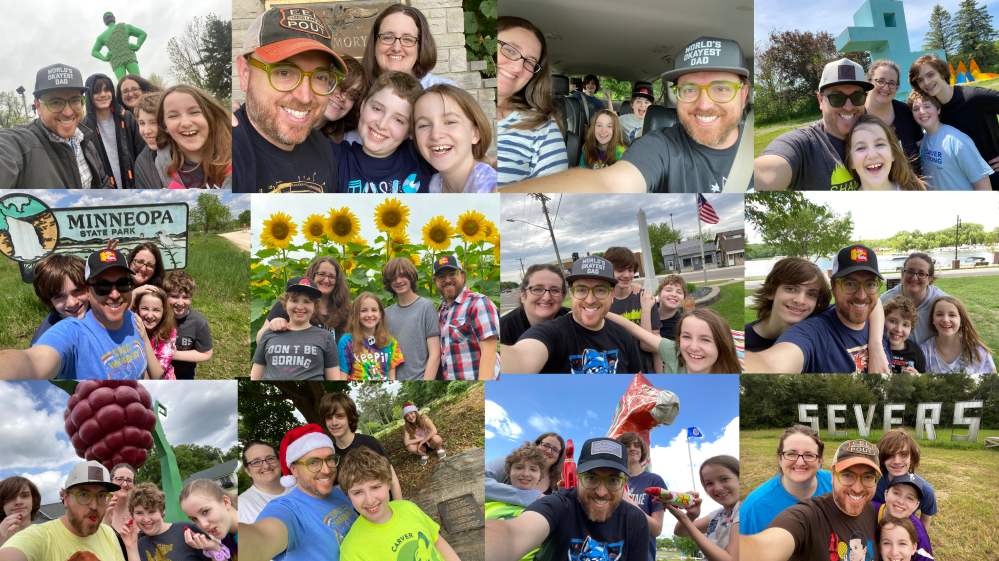 For each trip, I pumped up expectations for our trip as only a dad can. I provided clues, a countdown, and lots of dad jokes about how amazing the reveal would be. And of course there are surprises when we get there. I brought nickels for the kids to “make a wish” at the buffalo nickel, cans of green beans to pose with the Green Giant, and a picnic lunch at the smallest park. I bought Dala horses online for the Giant Dala Horse. And yes, we listened to Weird Al’s 7-minute classic, “Biggest Ball of Twine in Minnesota.”
