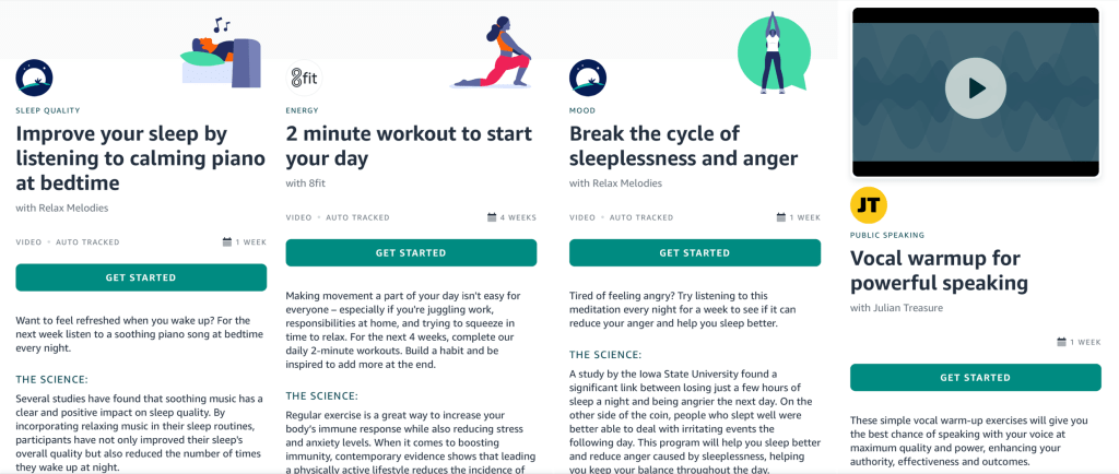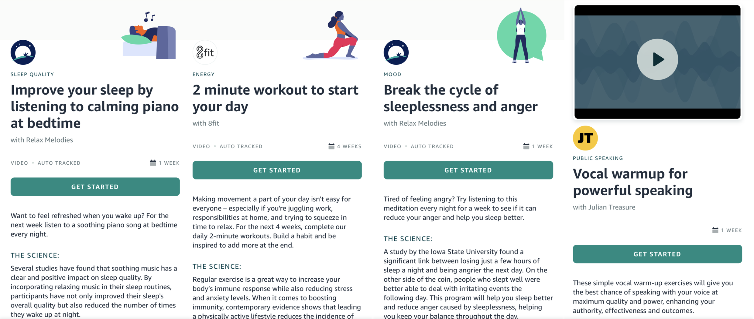 Throughout the app experience, Amazon Halo Labs experiences are highlighted with tips to help you fall asleep, stay asleep, boost your fitness workouts or change your diet. They will track a workout to a video series you watch and track your health data against it. This means Amazon is working hard to capitalize on the app-based fitness craze that Peloton, Strava, Apple Fitness+, and others are building. You can envision Amazon releasing their own bike, treadmill or suite of “Prime Exercise” apps and products using what they’ve learned from Halo and Halo Labs (and how many people will shell out $3.99/month for access).